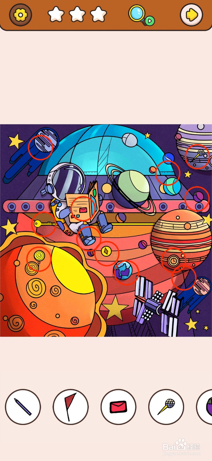 2、第九关需要找到十二个隐藏物品,我们来看下它们都在哪儿~